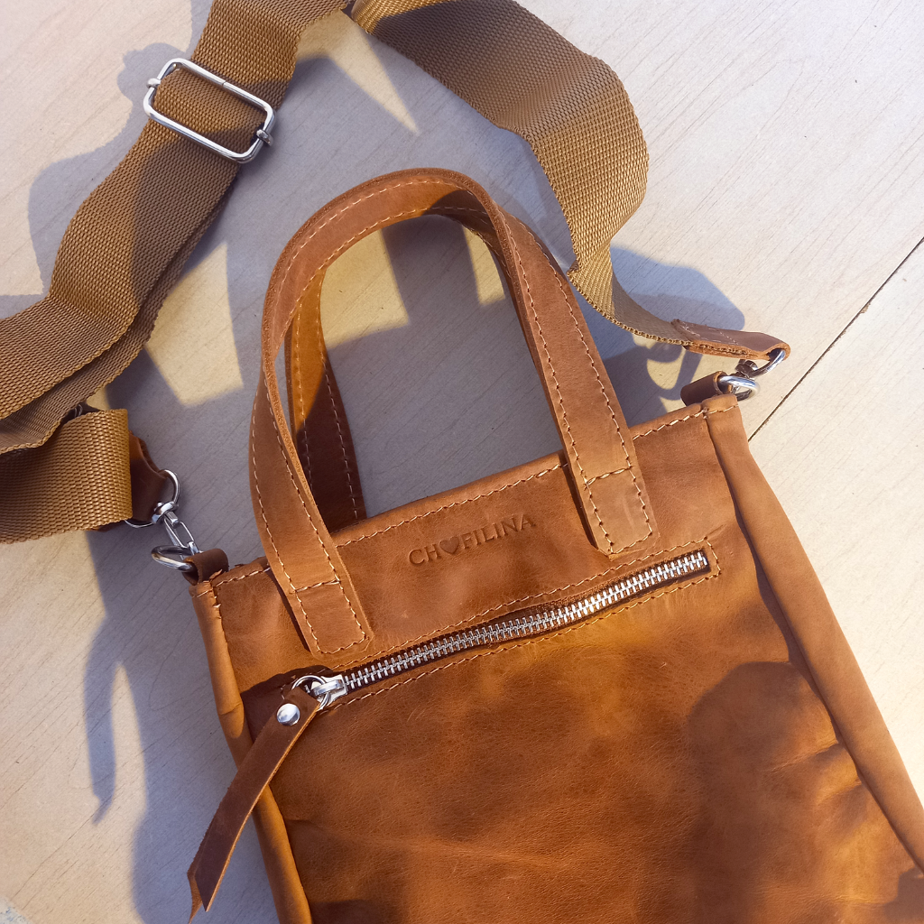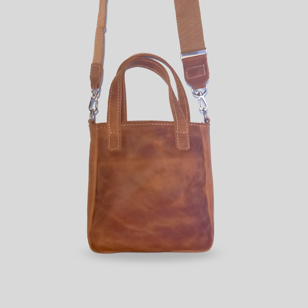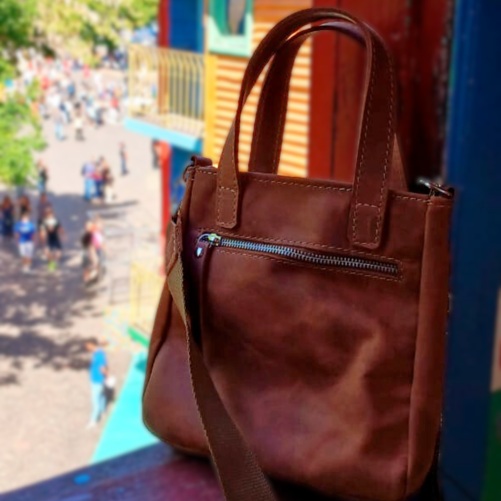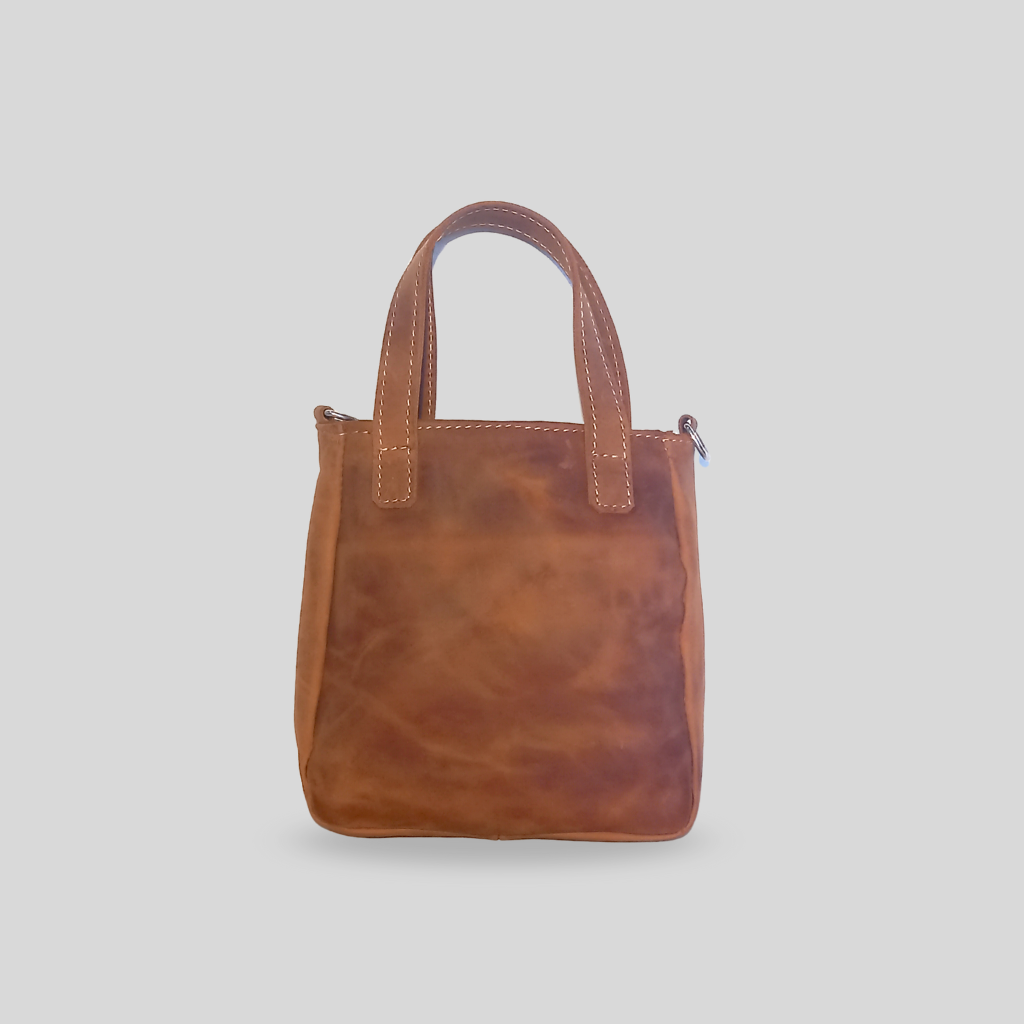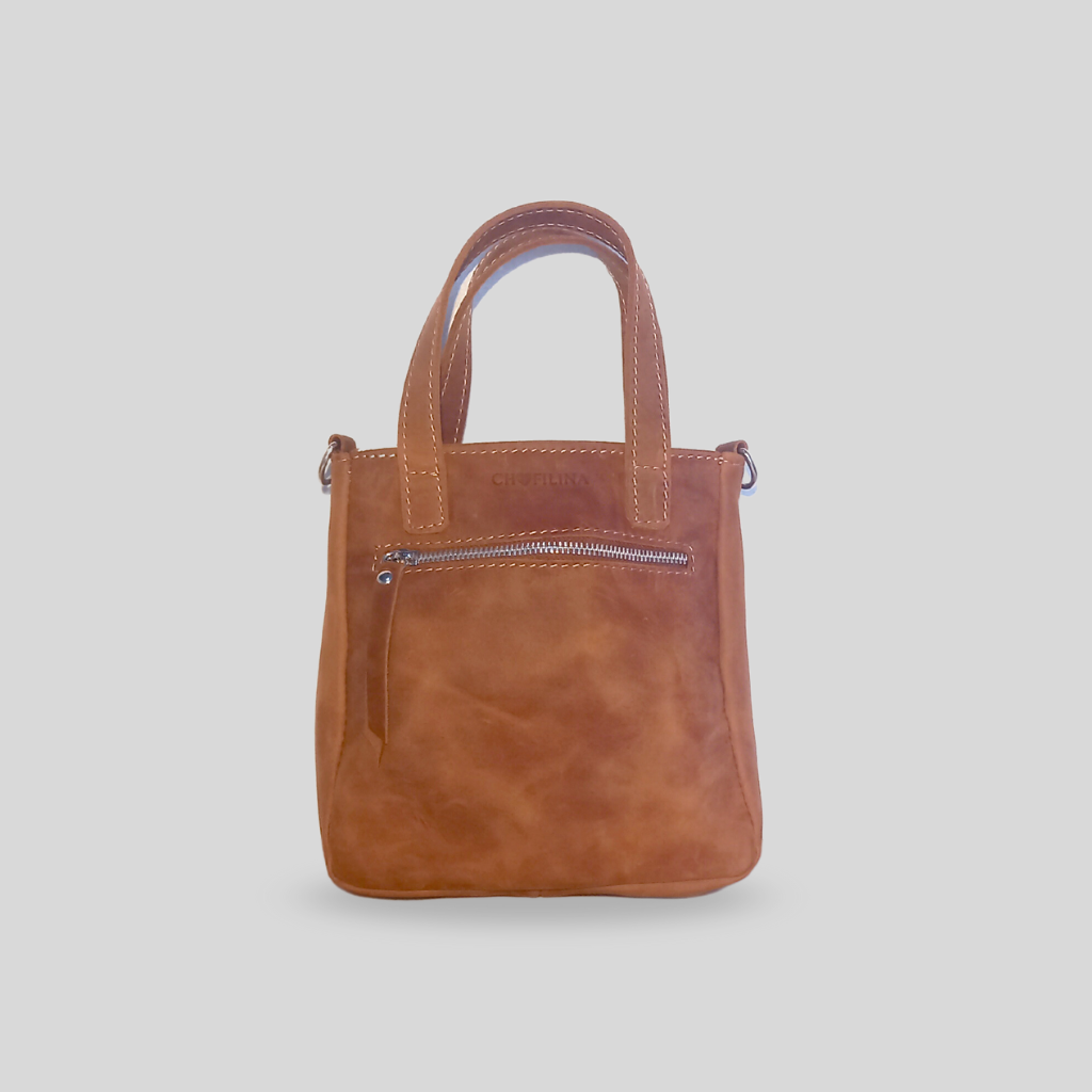 Nuestra mini tote Cloe de color marrón oscuro es mucho más que un simple bolso. Elaborada con cuero de la más alta calidad, tiene un bolsillo exterior, y un bolsillo plaque en su interior, este diseño compacto y elegante, perfectas para llevar lo esencial. El complemento perfecto para cualquier ocasión.