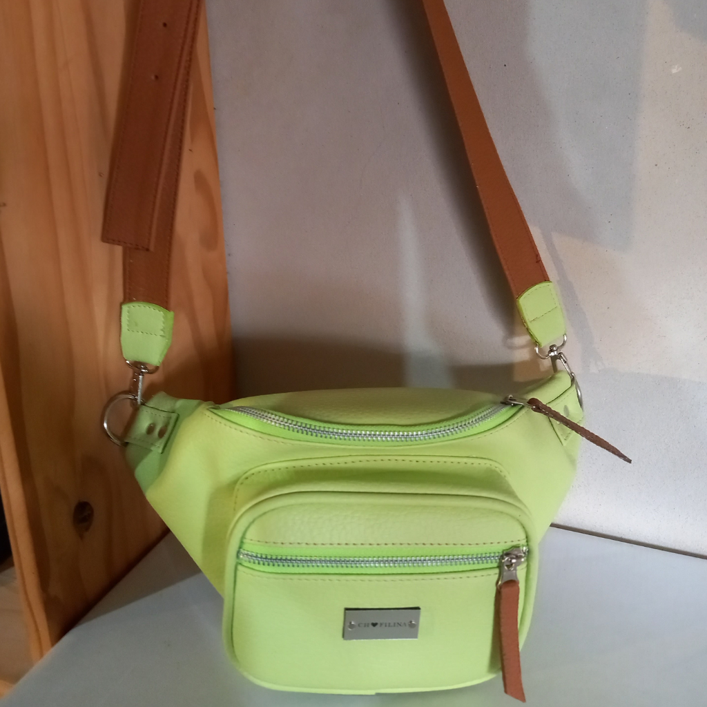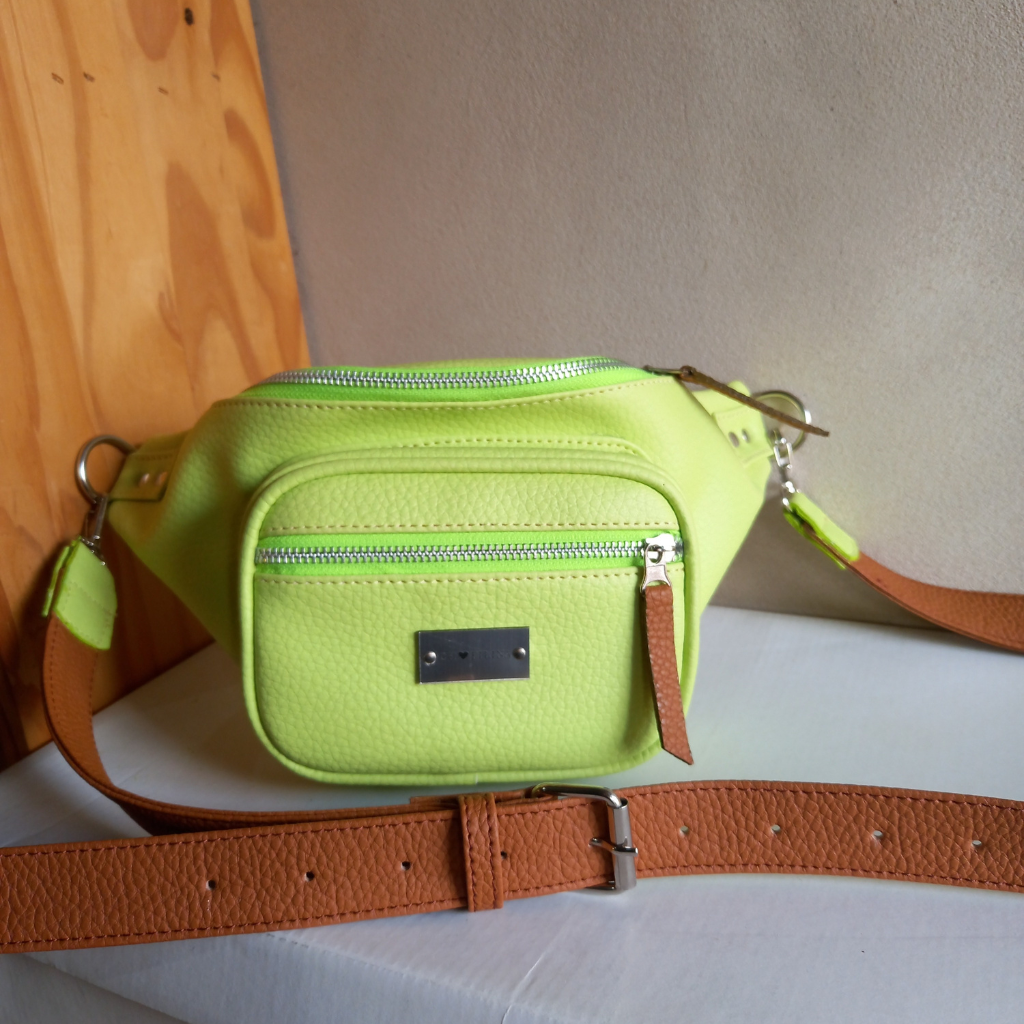 ¡Dale un subidón de color a tu outfit con la riñonera Sophie en tono lima + marrón!