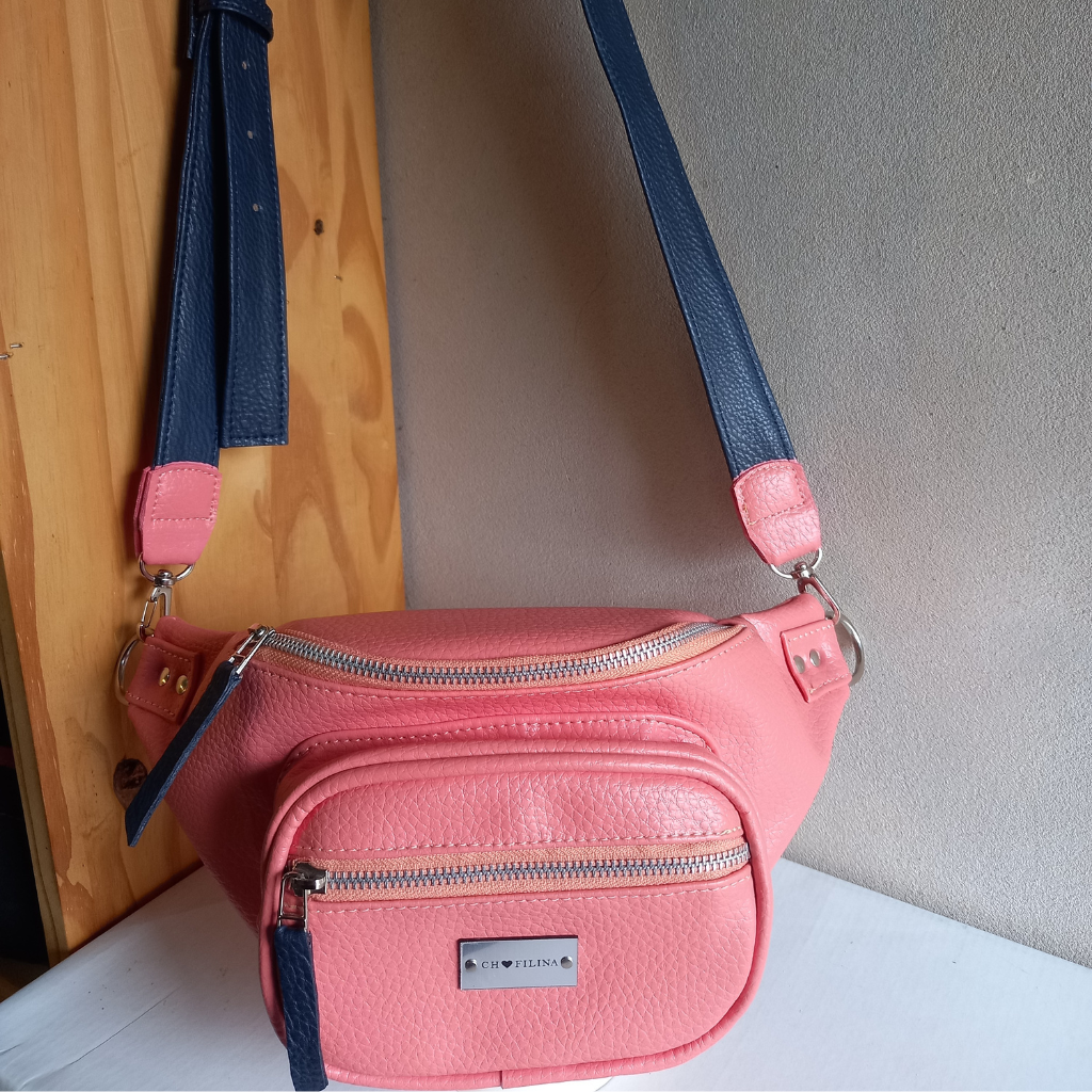 ¡Dale un subidón de color a tu outfit con la riñonera Sophie en tono Salmon + Azul!